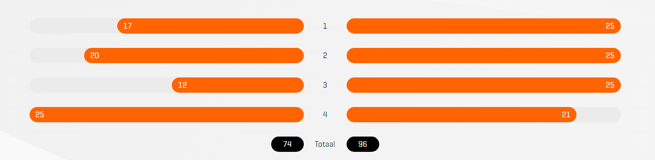 Heren 4 slaagde er in zich in de vierde set geweldig te herpakken. Met een sterke blokkering en veel druk in de aanval lukte het om het aanvalsspel van de tegenstander dusdanig te verstoren dat wij beter in ons eigen spel kwamen. De eerste helft van de set ging nagenoeg gelijk op, maar halverwege werd er een klein gat van een aantal punten geslagen. Met hier en daar hangen en wurgen lukte het deze comfortabele voorsprong vast te houden. En daarmee slaagde Heren 4 er in een punt te pakken tegen de nummer 3: 25-21 setwinst.