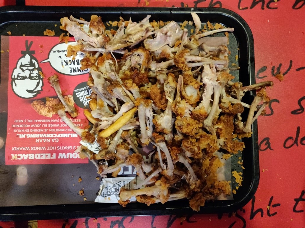 De slachting van A(pollo) werd gevisualiseerd bij de lokale KFC toen men geen chinees in de buurt kon vinden (misschien hebben we ook gewoon niet gezocht). Gevarieerd eten is namelijk belangrijk. Er werd ondervonden dat dit een zeer nuttige tussenstop was waar de energiehoeveelheid bijgevuld werd voor de voortzetting van het programma van de avond. De fietstocht vervolgde zich via meerdere huizen, waar toch weer bier aangetroffen werd, tot aan het eind van de rit voor enkelen onder ons. Een huisfeest dat in de late nacht nog in volle gang was werd bijgewoond om langer te genieten van het spektakel van de dag. Gelukkig voor menig man op kruipafstand van huis. Anderen waren minder te spreken over de afstand die nog overbrugt moest worden in de vroege uurtjes.